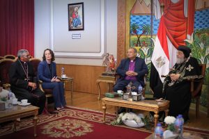 التقى قداسة البابا تواضروس الثاني، بابا الإسكندرية وبطريرك الكرازة المرقسية، اليوم، الدكتور القس أندريه زكي، رئيس الطائفة الإنجيلية بمصر، ووفدًا رفيع المستوى من مجلس كنائس جنوب إفريقيا وممثلي الكنائس الأمريكية، برئاسة الدكتورة القس ماي إليس كانون، المديرة التنفيذية لمنظمة “كنائس من أجل السلام في الشرق الأوسط”، في مقر الكاتدرائية المرقسية بالعباسية.